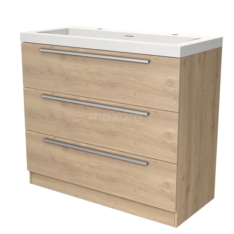Modulo Waschtische | 100 cm Hellbraune Eiche Flach front Solid Surface 3 stehende Schubladen