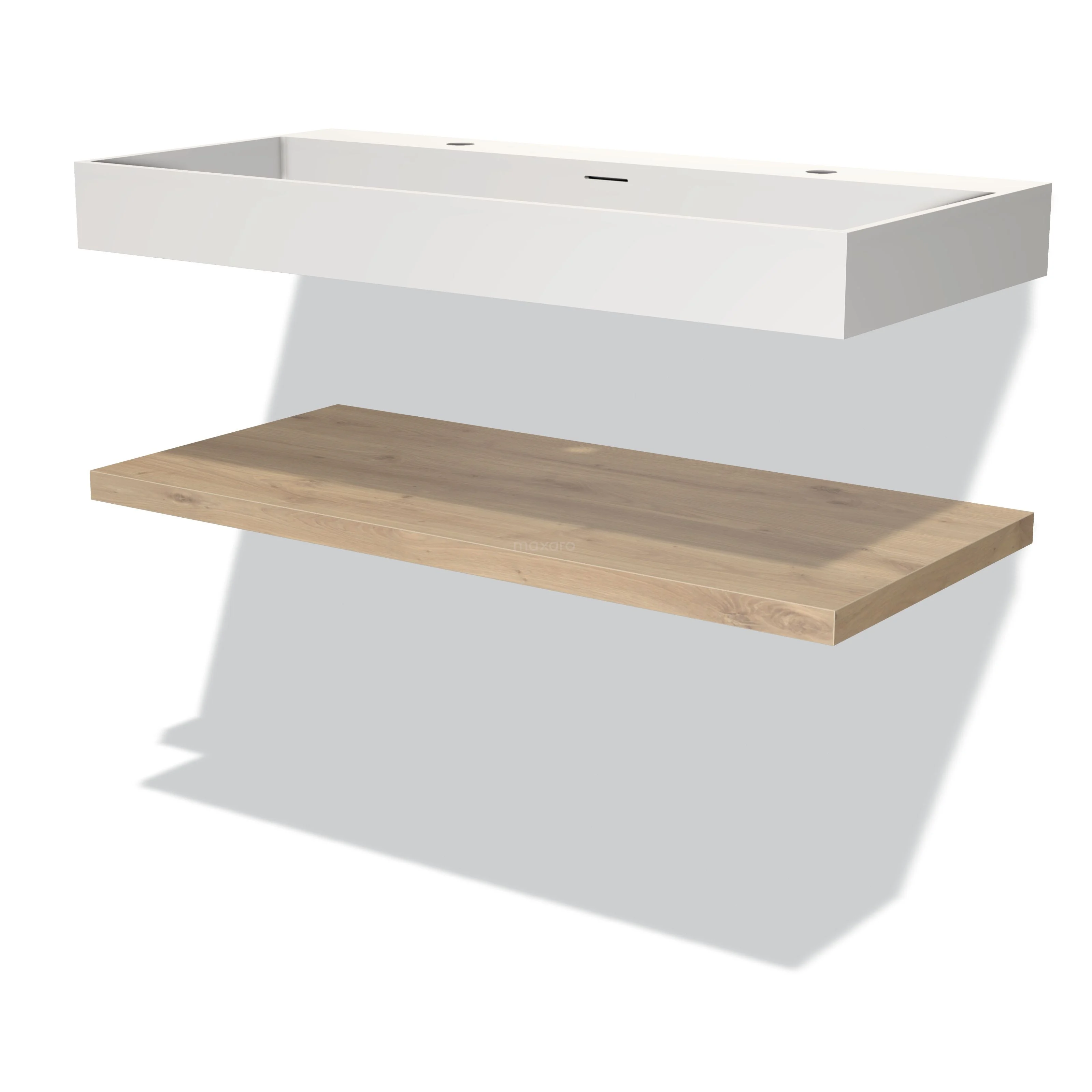 Modulo Waschtische | 100 cm Hellbraune Eiche front Solid Surface Waschbecken mit Platte