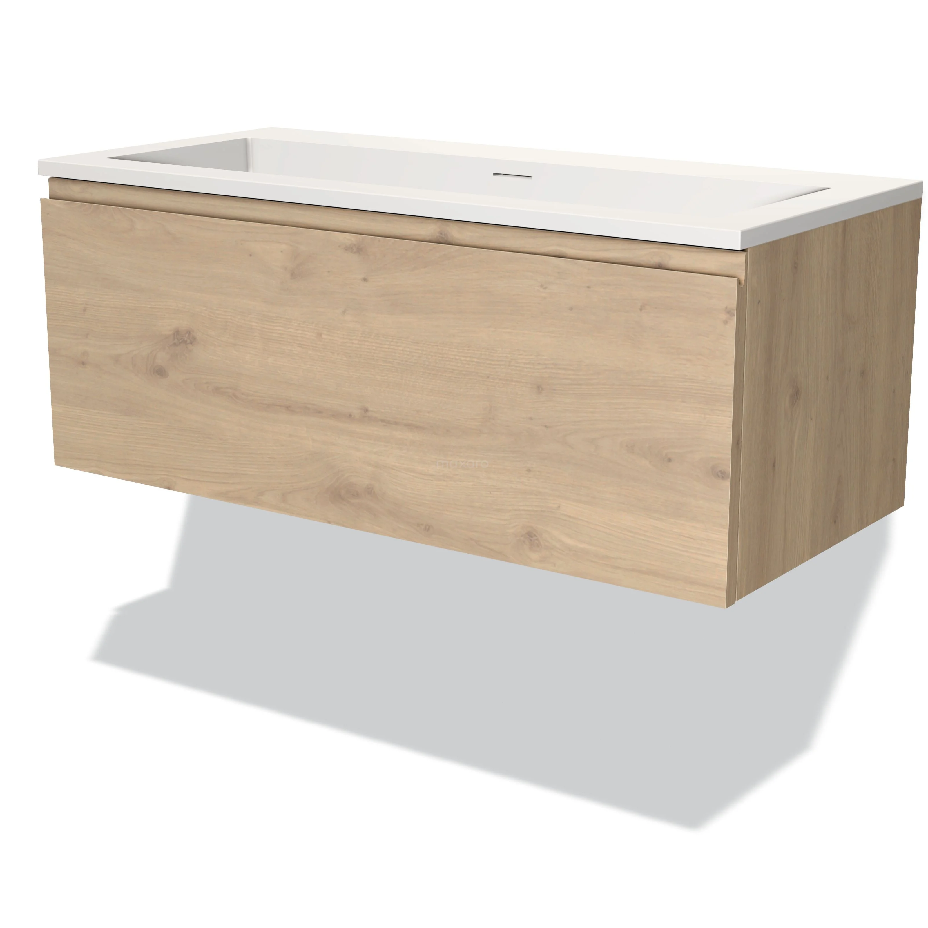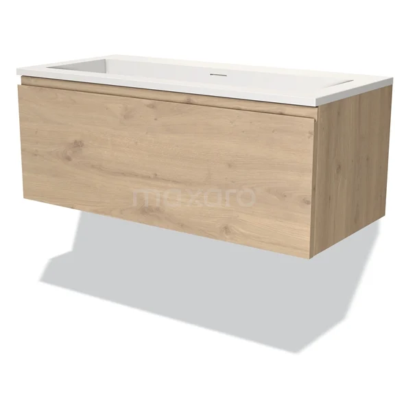 Modulo Waschtische | 100 cm Hellbraune Eiche Grifflos front Solid Surface 1 Schublade