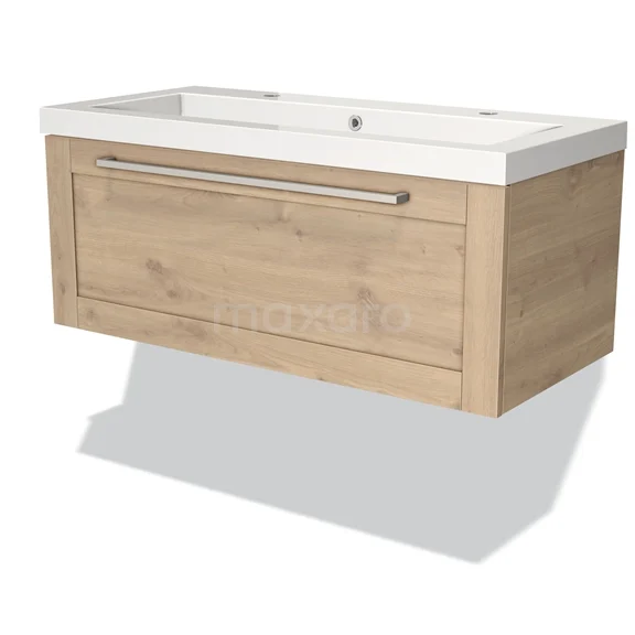 Modulo Waschtische | 100 cm Hellbraune Eiche Rahmen front Mineralguss 1 Schublade