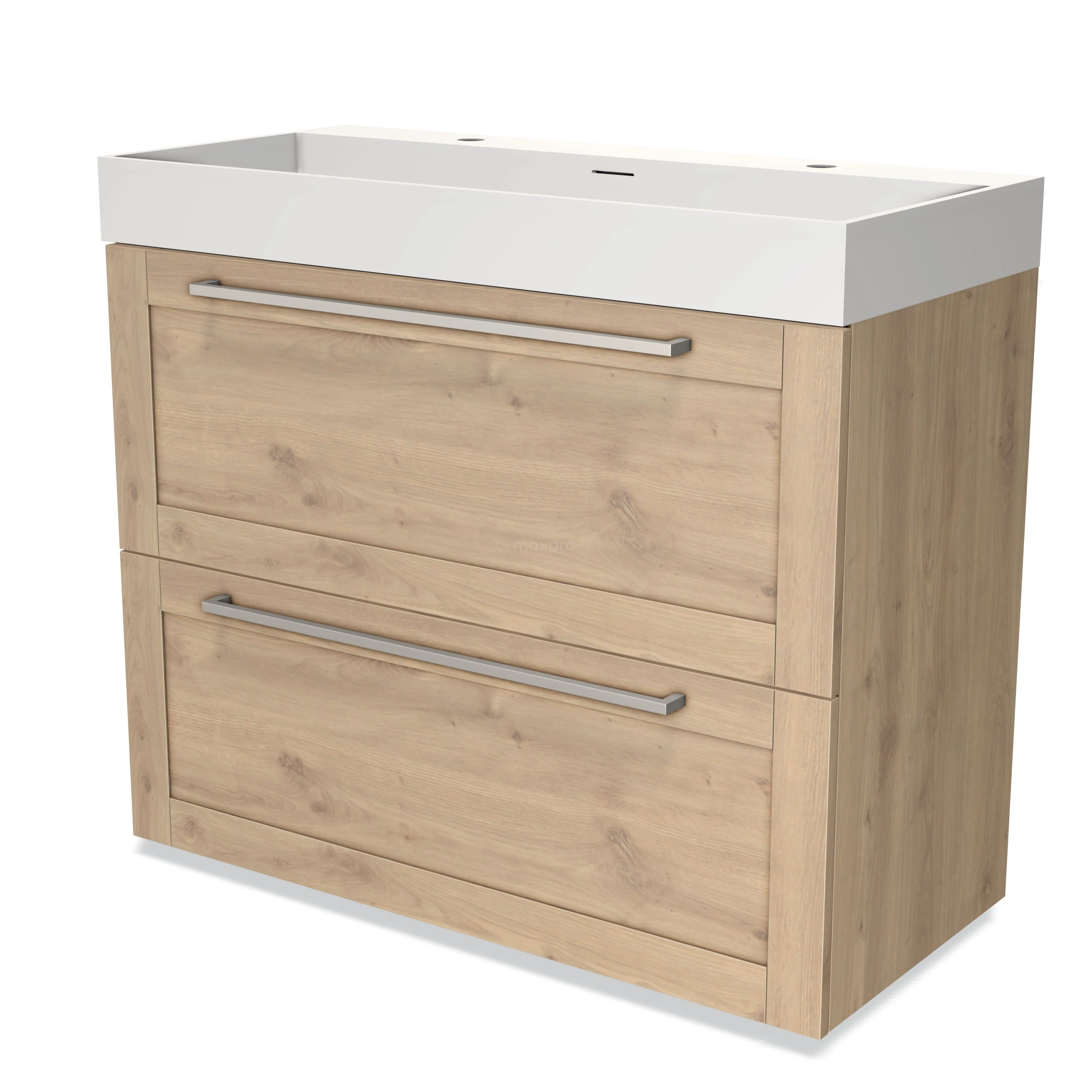 Modulo Waschtische | 100 cm Hellbraune Eiche Rahmen front Solid Surface 2 hohe Schubladen übereinanderliegend