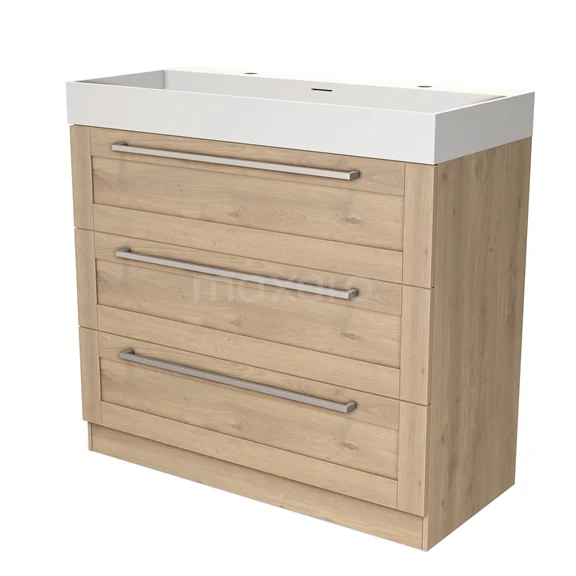 Modulo Waschtische | 100 cm Hellbraune Eiche Rahmen front Solid Surface 3 stehende Schubladen