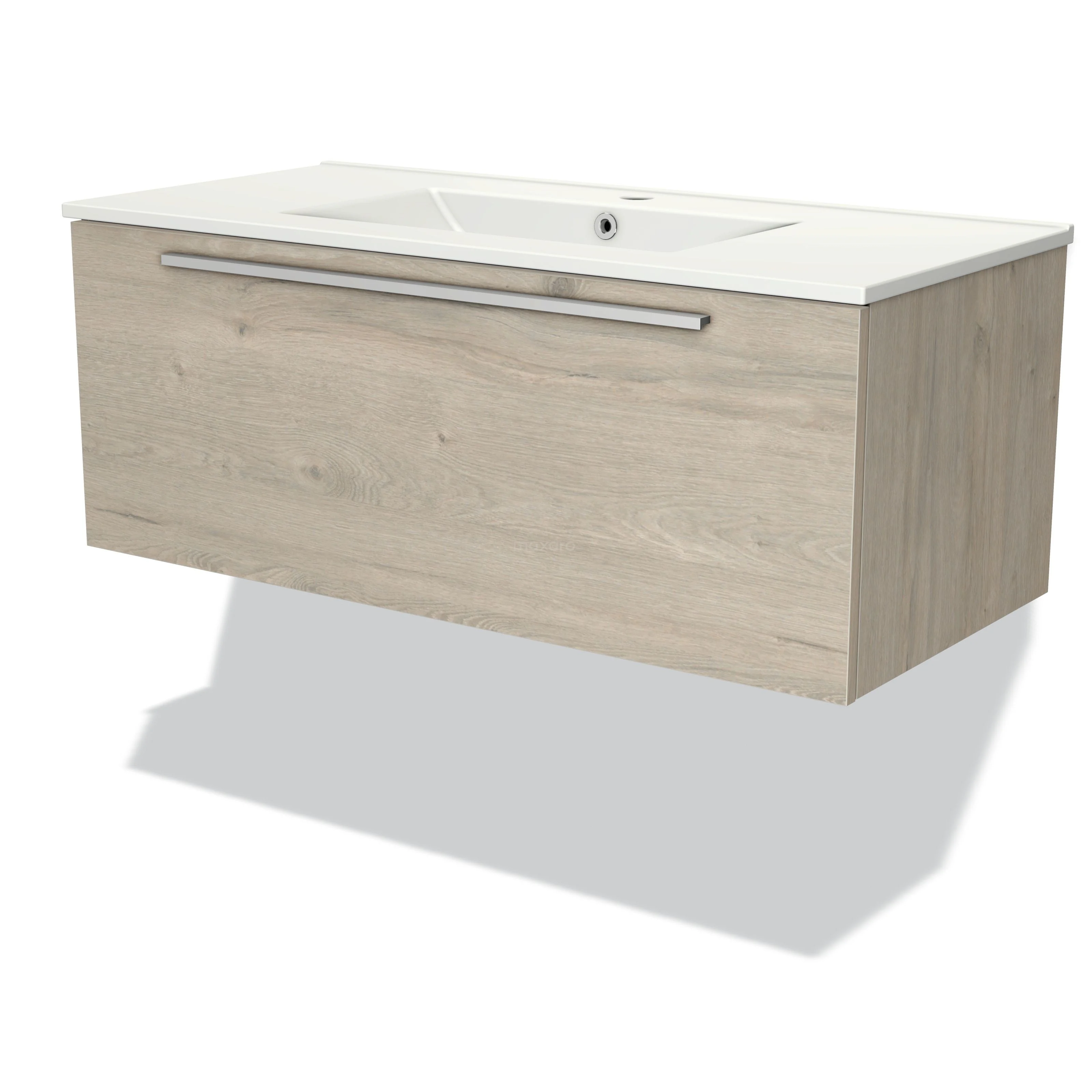 Modulo Waschtische | 100 cm Hellgraue Eiche Flach front Keramik 1 Schublade
