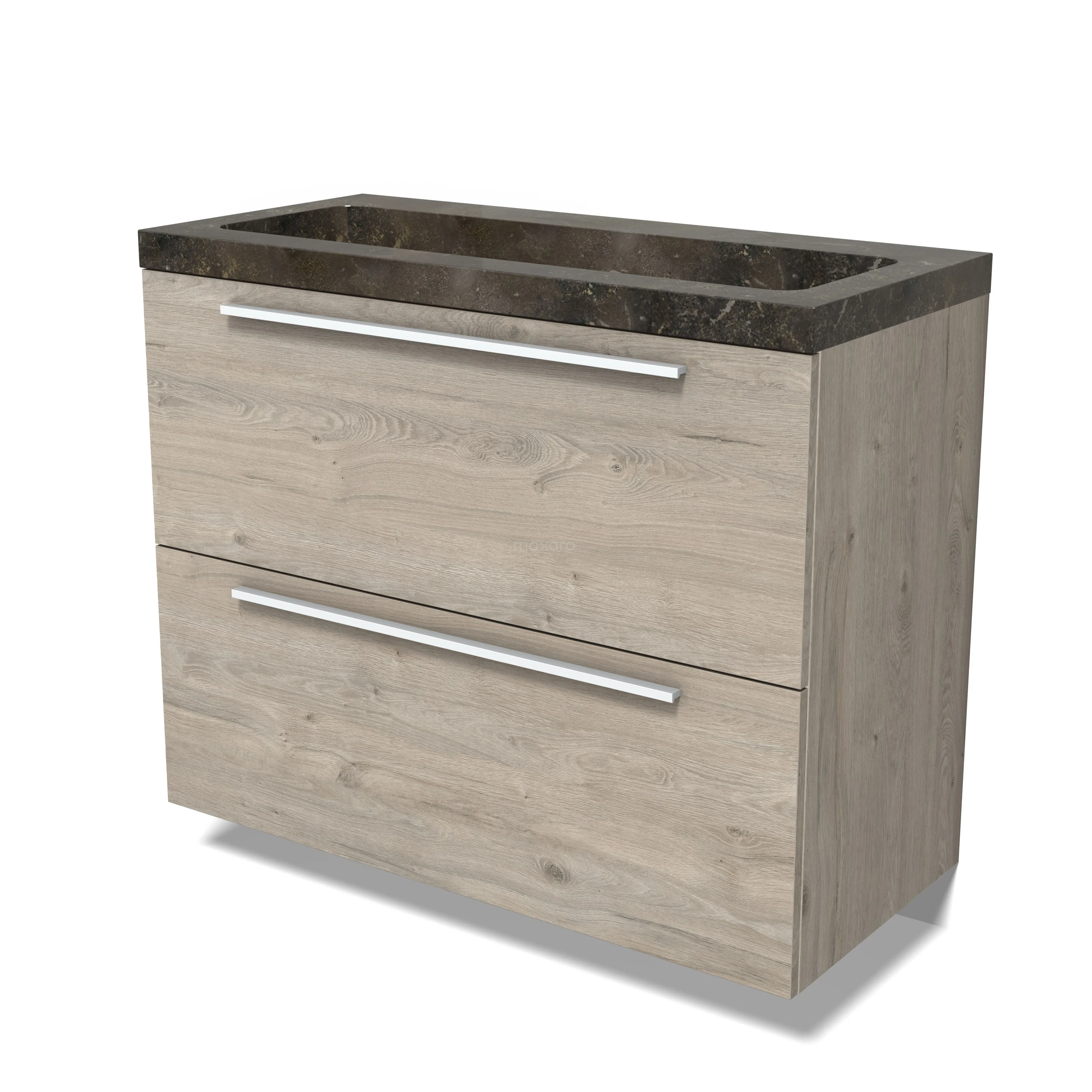 Modulo Waschtische | 100 cm Hellgraue Eiche Flach front Naturstein 2 hohe Schubladen übereinanderliegend