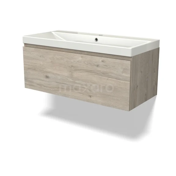 Modulo Waschtische | 100 cm Hellgraue Eiche Grifflos front Keramik 1 Schublade