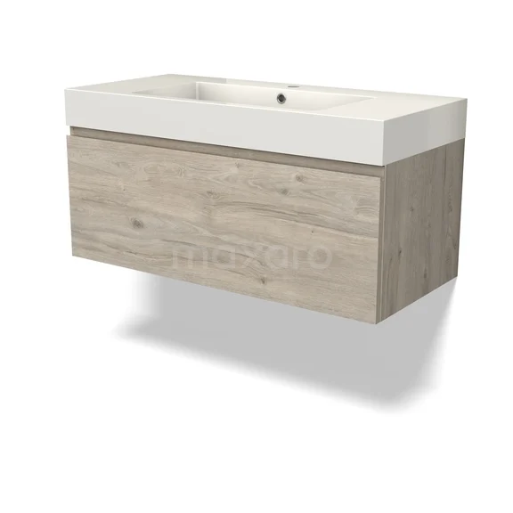 Modulo Waschtische | 100 cm Hellgraue Eiche Grifflos front Mineralguss 1 Schublade