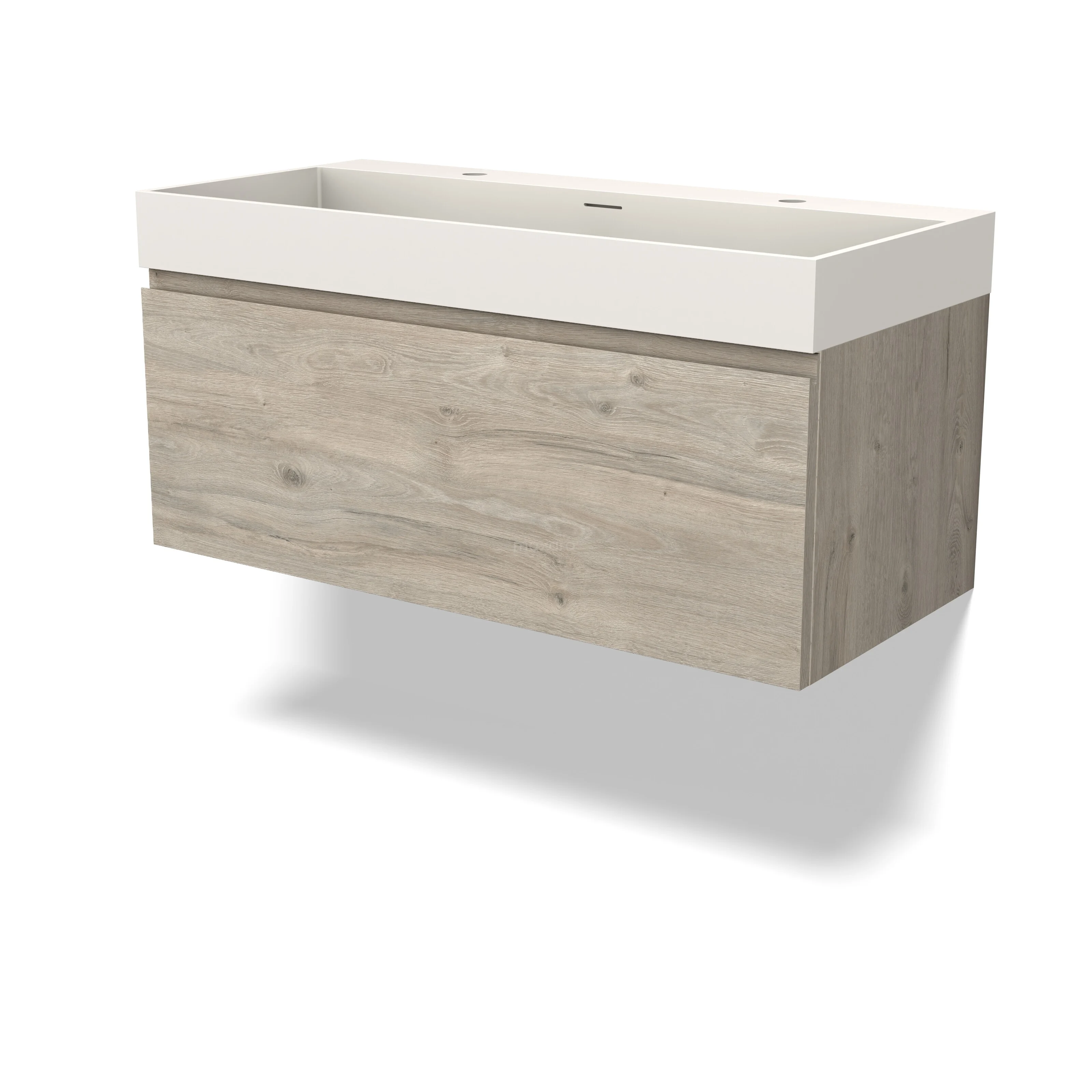 Modulo Waschtische | 100 cm Hellgraue Eiche Grifflos front Solid Surface 1 Schublade