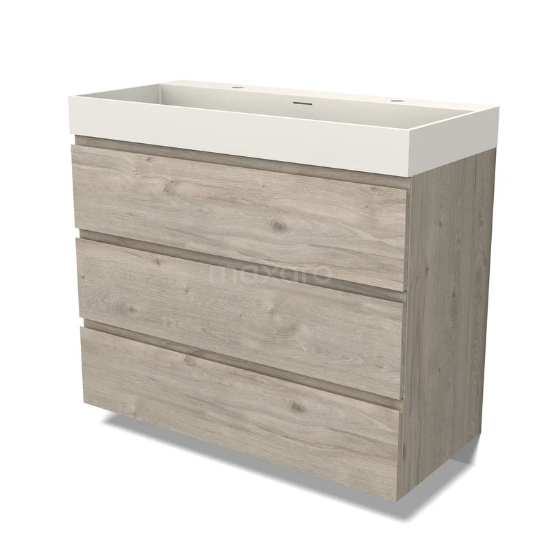 Modulo Waschtische | 100 cm Hellgraue Eiche Grifflos front Solid Surface 3 Schubladen