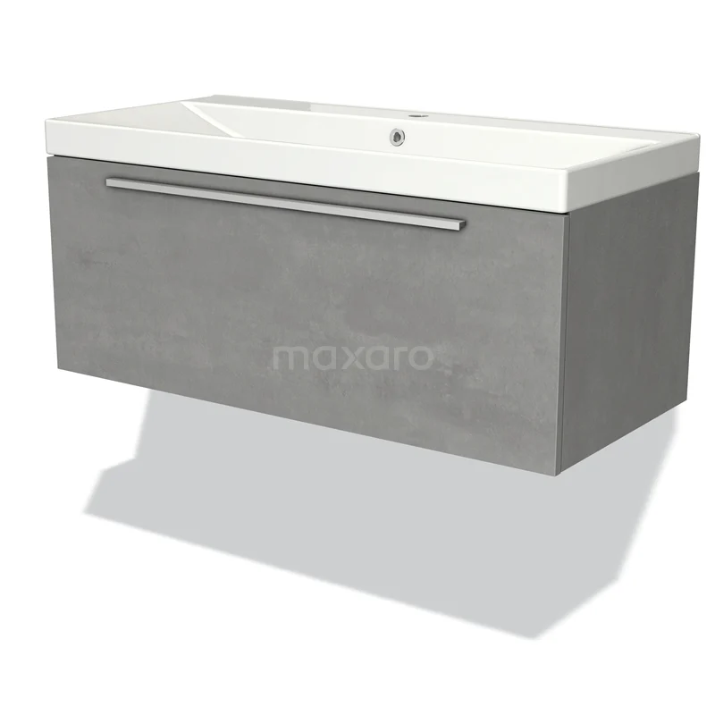 Modulo Waschtische | 100 cm Hellgrauer Beton Flach front Keramik 1 Schublade