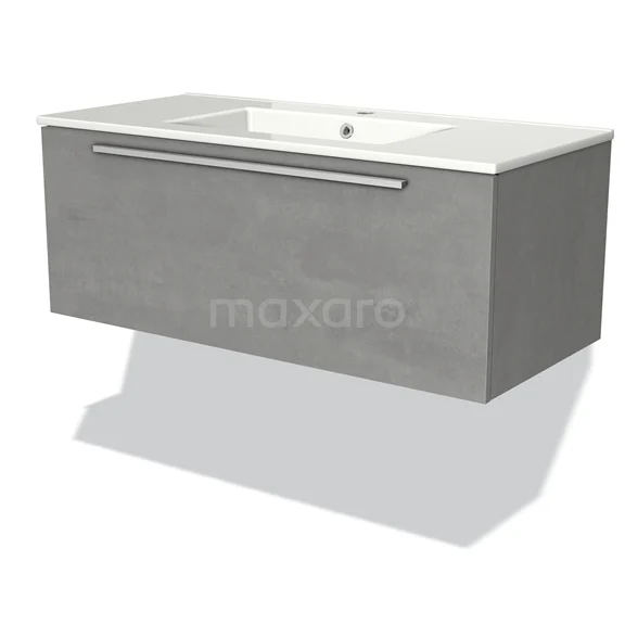 Modulo Waschtische | 100 cm Hellgrauer Beton Flach front Keramik 1 Schublade