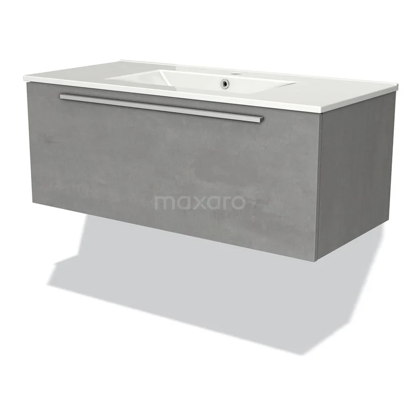 Modulo Waschtische | 100 cm Hellgrauer Beton Flach front Keramik 1 Schublade