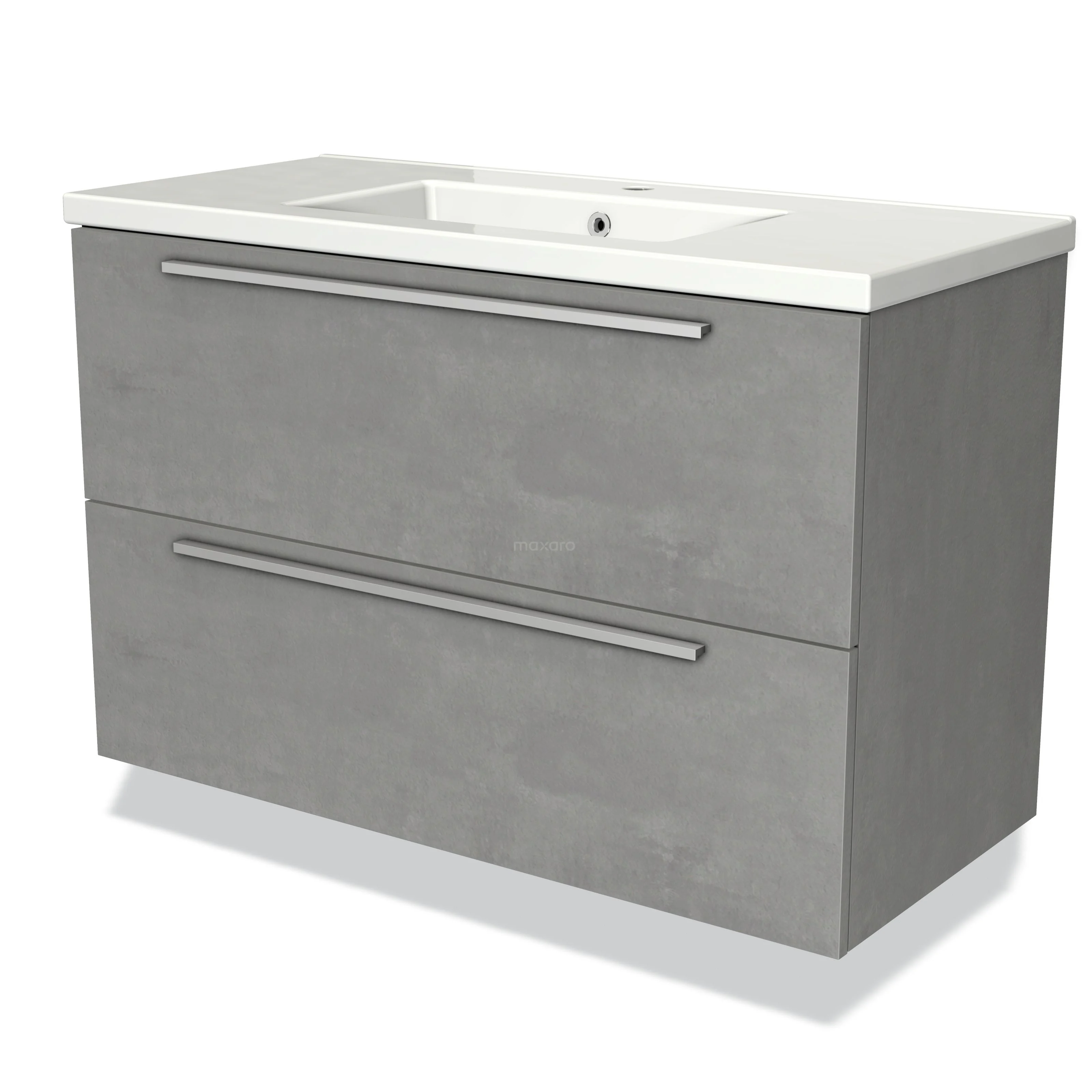 Modulo Waschtische | 100 cm Hellgrauer Beton Flach front Keramik 2 übereinanderliegende Schubladen