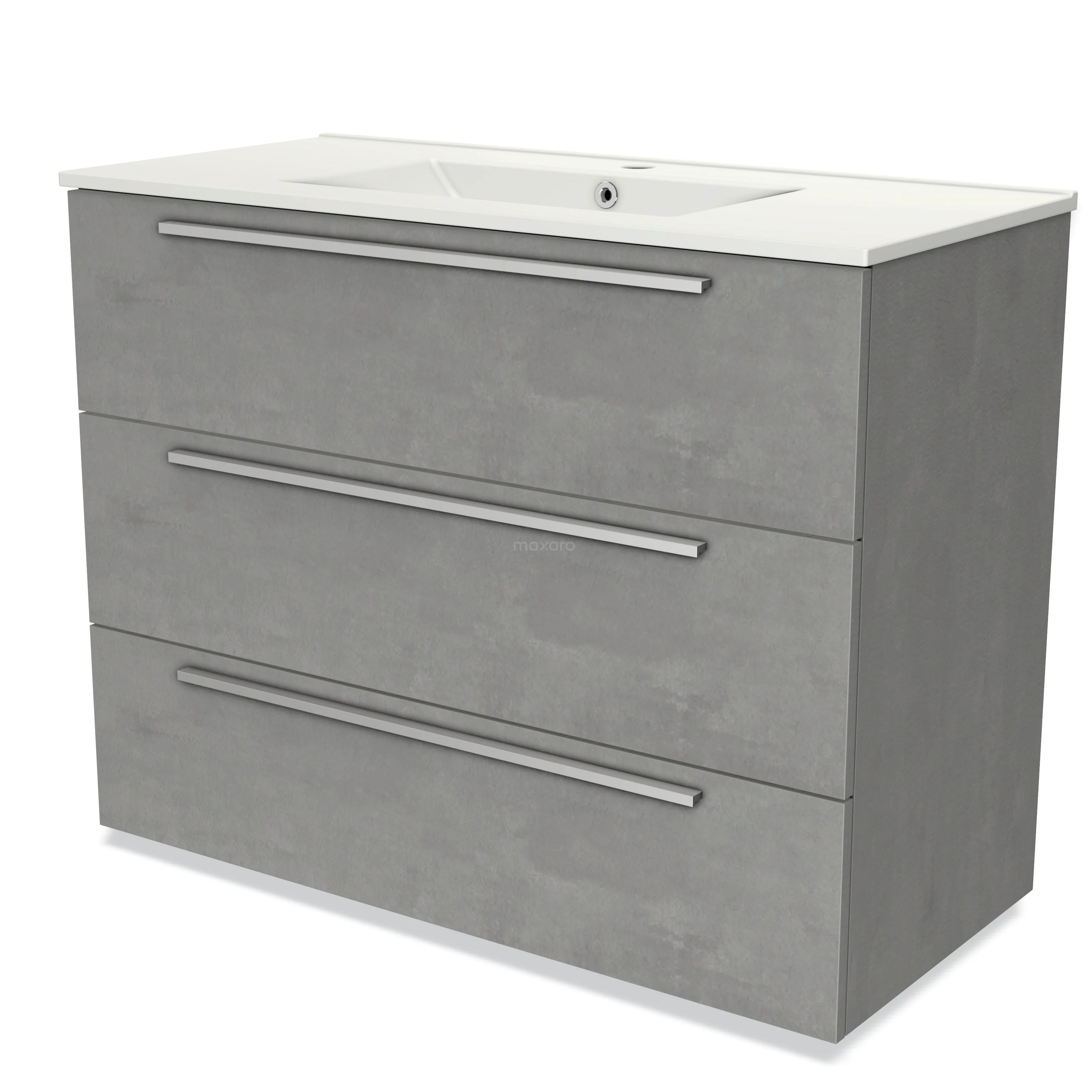 Modulo Waschtische | 100 cm Hellgrauer Beton Flach front Keramik 3 Schubladen