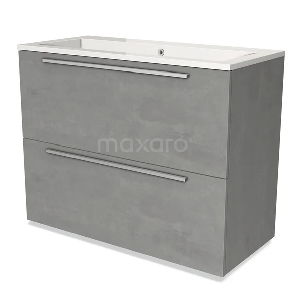 Modulo Waschtische | 100 cm Hellgrauer Beton Flach front Mineralguss 2 hohe Schubladen übereinanderliegend
