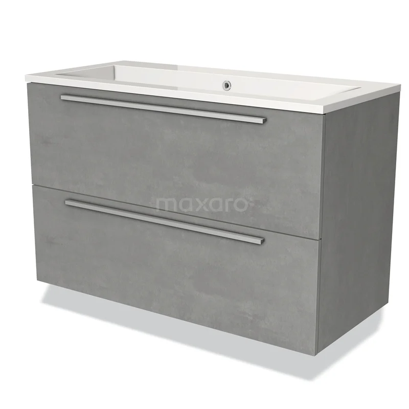 Modulo Waschtische | 100 cm Hellgrauer Beton Flach front Mineralguss 2 übereinanderliegende Schubladen