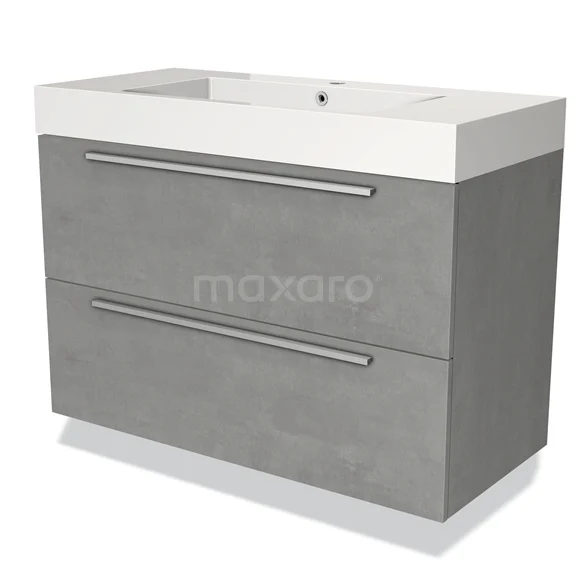 Modulo Waschtische | 100 cm Hellgrauer Beton Flach front Mineralguss 2 übereinanderliegende Schubladen