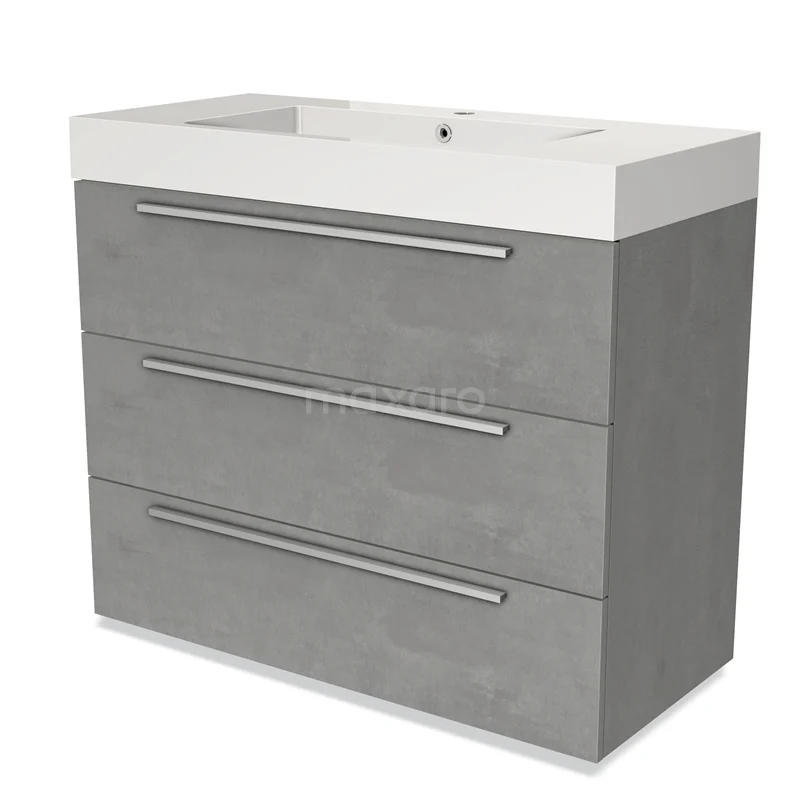Modulo Waschtische | 100 cm Hellgrauer Beton Flach front Mineralguss 3 Schubladen