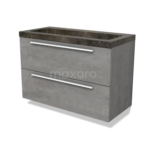 Modulo Waschtische | 100 cm Hellgrauer Beton Flach front Naturstein 2 übereinanderliegende Schubladen