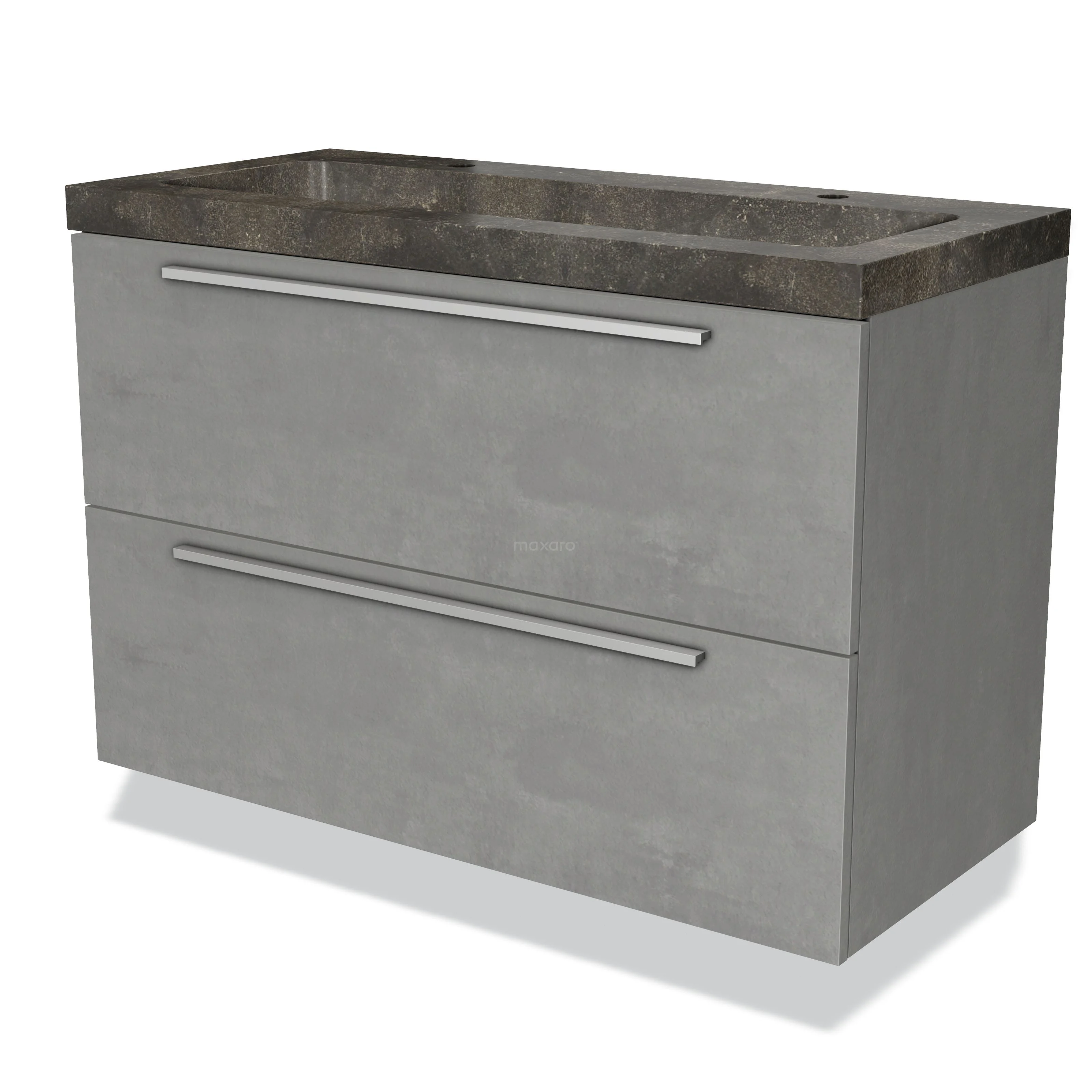Modulo Waschtische | 100 cm Hellgrauer Beton Flach front Naturstein 2 übereinanderliegende Schubladen