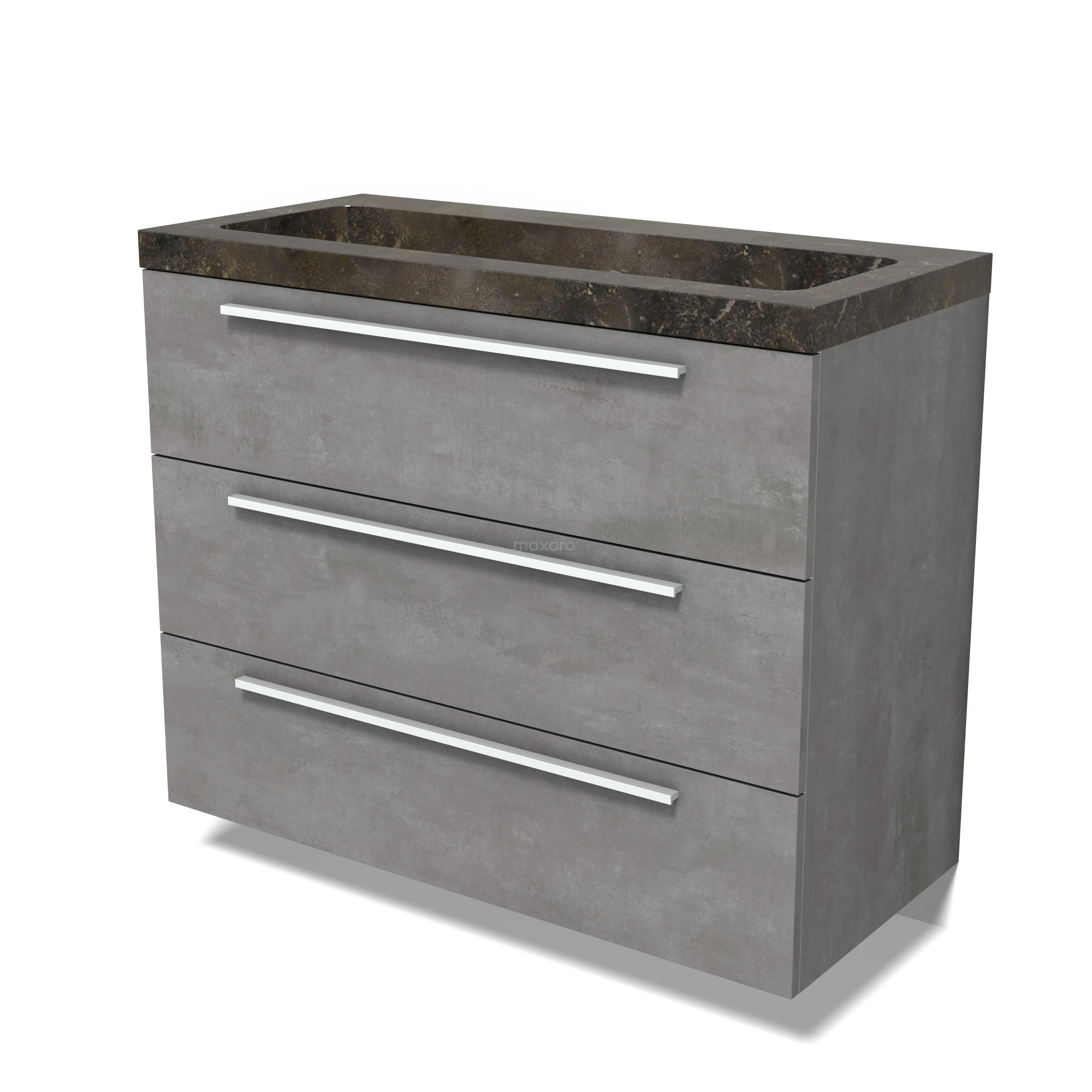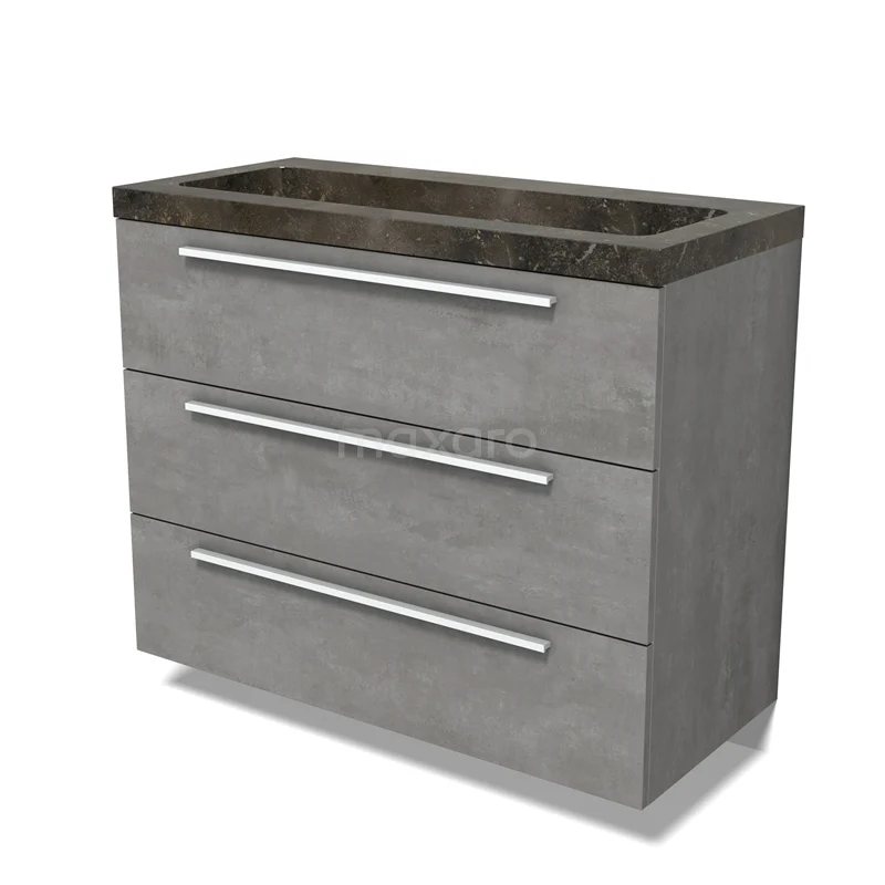 Modulo Waschtische | 100 cm Hellgrauer Beton Flach front Naturstein 3 Schubladen