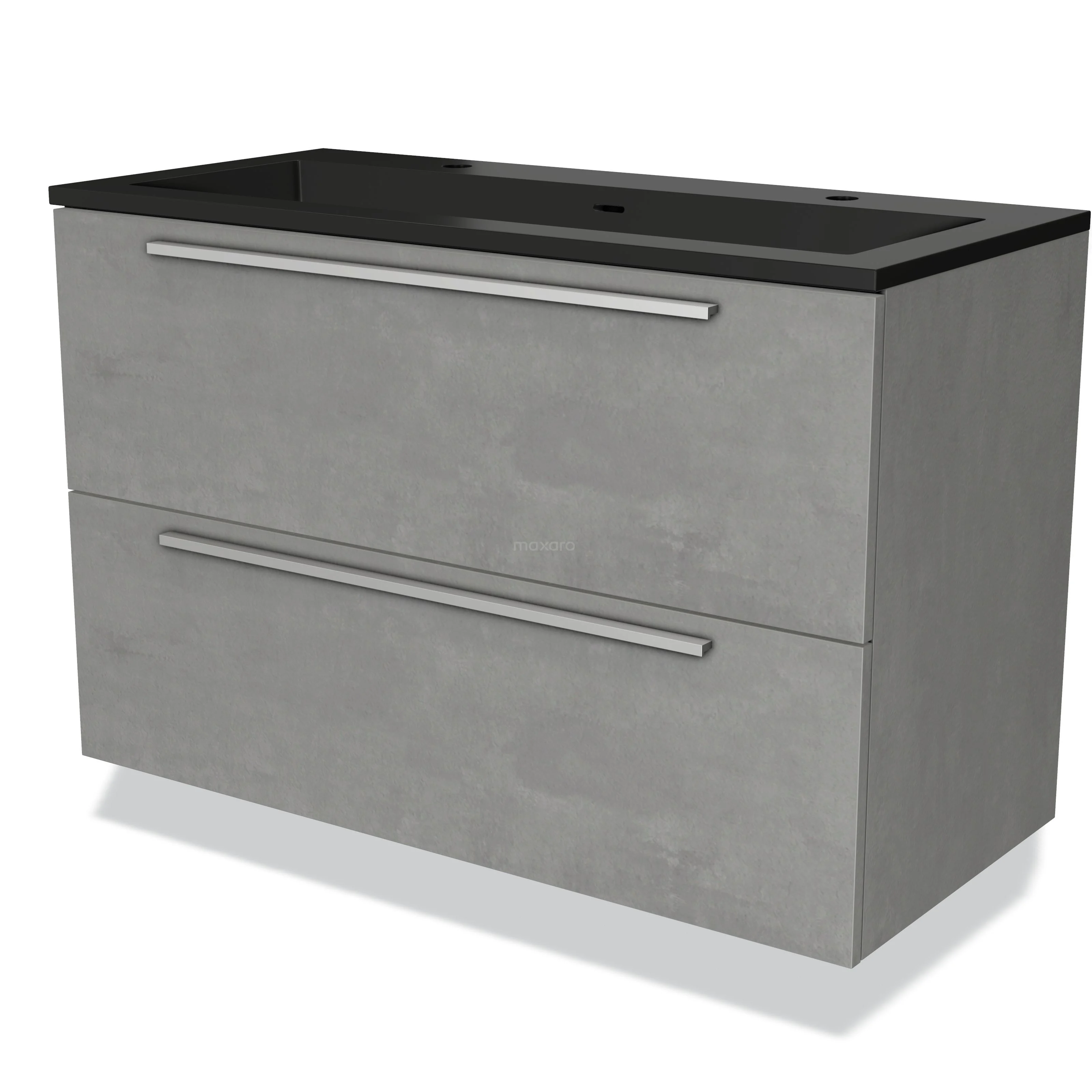 Modulo Waschtische | 100 cm Hellgrauer Beton Flach front Quarz 2 übereinanderliegende Schubladen