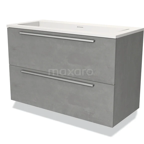 Modulo Waschtische | 100 cm Hellgrauer Beton Flach front Solid Surface 2 übereinanderliegende Schubladen