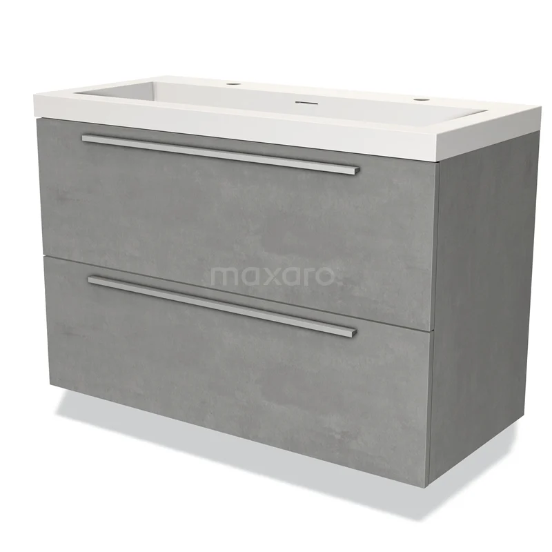 Modulo Waschtische | 100 cm Hellgrauer Beton Flach front Solid Surface 2 übereinanderliegende Schubladen