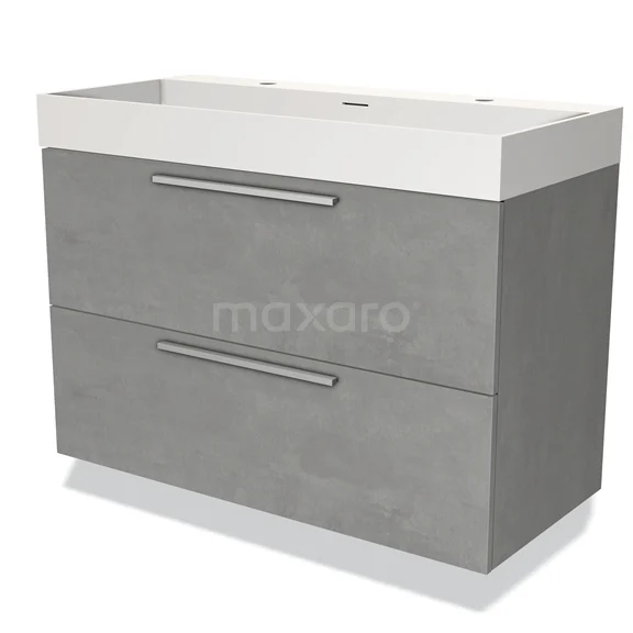 Modulo Waschtische | 100 cm Hellgrauer Beton Flach front Solid Surface 2 übereinanderliegende Schubladen