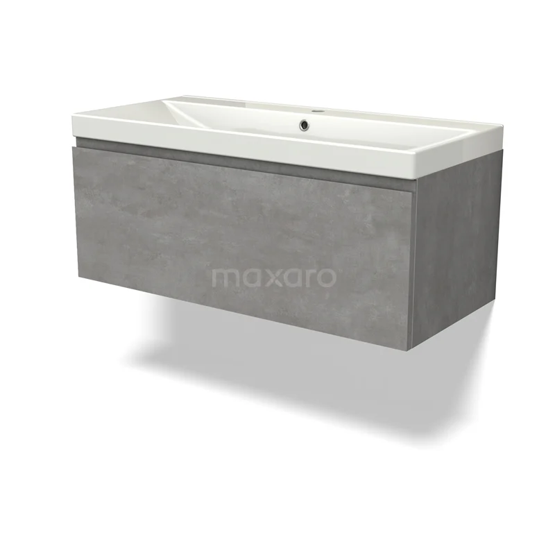 Modulo Waschtische | 100 cm Hellgrauer Beton Grifflos front Keramik 1 Schublade