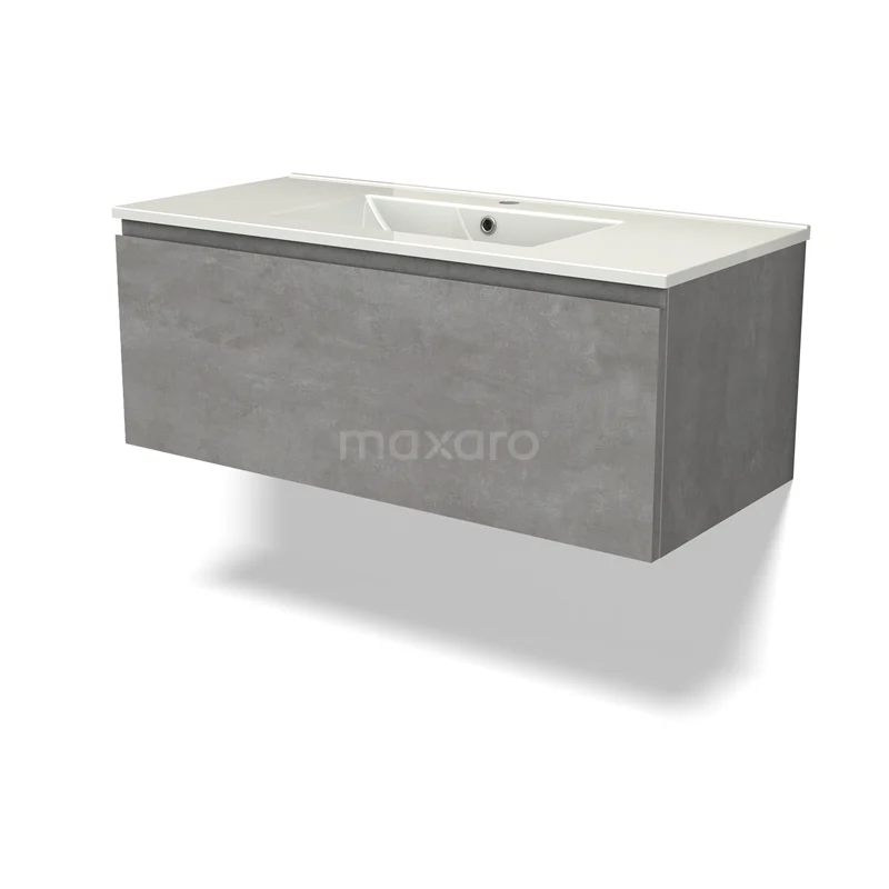 Modulo Waschtische | 100 cm Hellgrauer Beton Grifflos front Keramik 1 Schublade