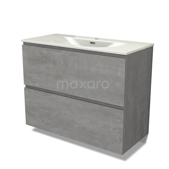 Modulo Waschtische | 100 cm Hellgrauer Beton Grifflos front Keramik 2 hohe Schubladen übereinanderliegend