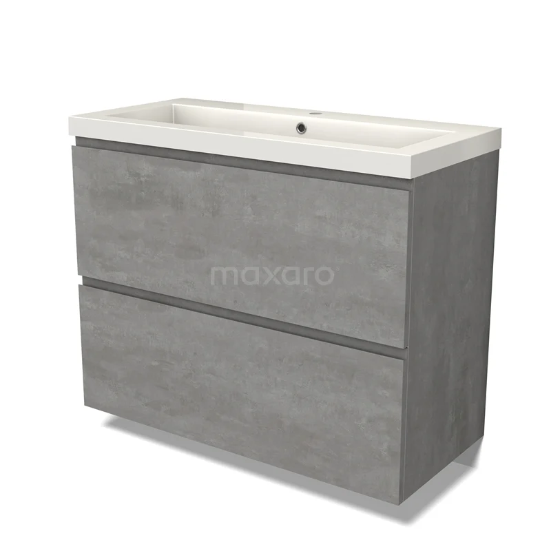 Modulo Waschtische | 100 cm Hellgrauer Beton Grifflos front Mineralguss 2 hohe Schubladen übereinanderliegend