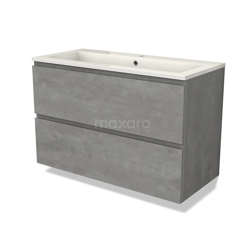 Modulo Waschtische | 100 cm Hellgrauer Beton Grifflos front Mineralguss 2 übereinanderliegende Schubladen