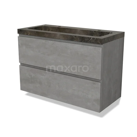 Modulo Waschtische | 100 cm Hellgrauer Beton Grifflos front Naturstein 2 übereinanderliegende Schubladen