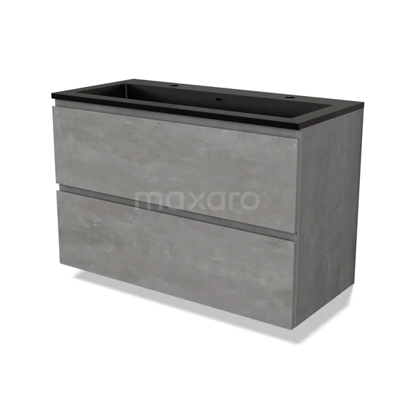 Modulo Waschtische | 100 cm Hellgrauer Beton Grifflos front Quarz 2 übereinanderliegende Schubladen