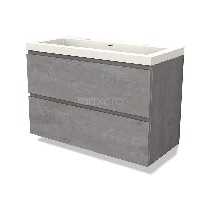 Modulo Waschtische | 100 cm Hellgrauer Beton Grifflos front Solid Surface 2 übereinanderliegende Schubladen