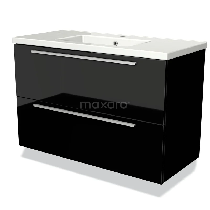 Modulo Waschtische | 100 cm Hochglanz Schwarz Flach front Keramik 2 übereinanderliegende Schubladen