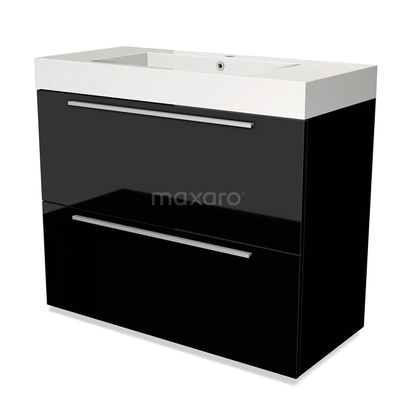 Modulo Waschtische | 100 cm Hochglanz Schwarz Flach front Mineralguss 2 hohe Schubladen übereinanderliegend