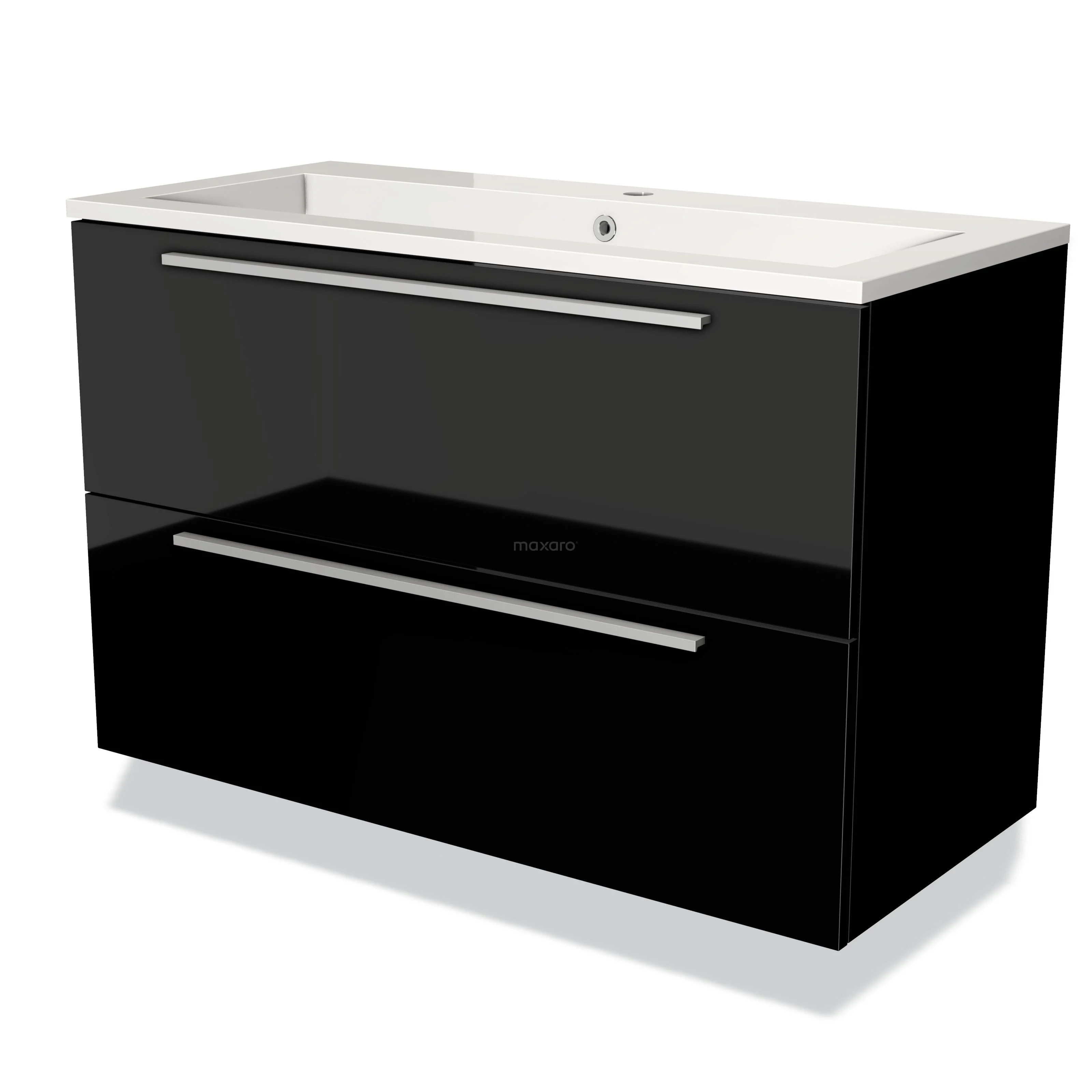 Modulo Waschtische | 100 cm Hochglanz Schwarz Flach front Mineralguss 2 übereinanderliegende Schubladen