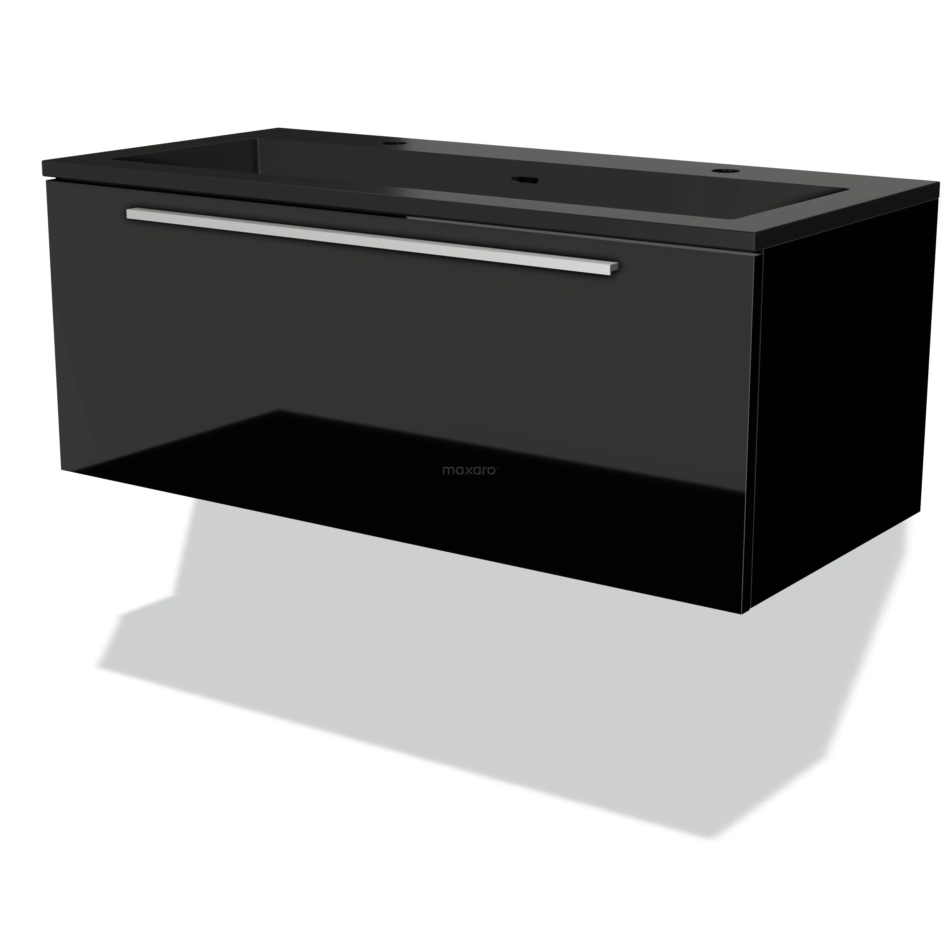 Modulo Waschtische | 100 cm Hochglanz Schwarz Flach front Quarz 1 Schublade