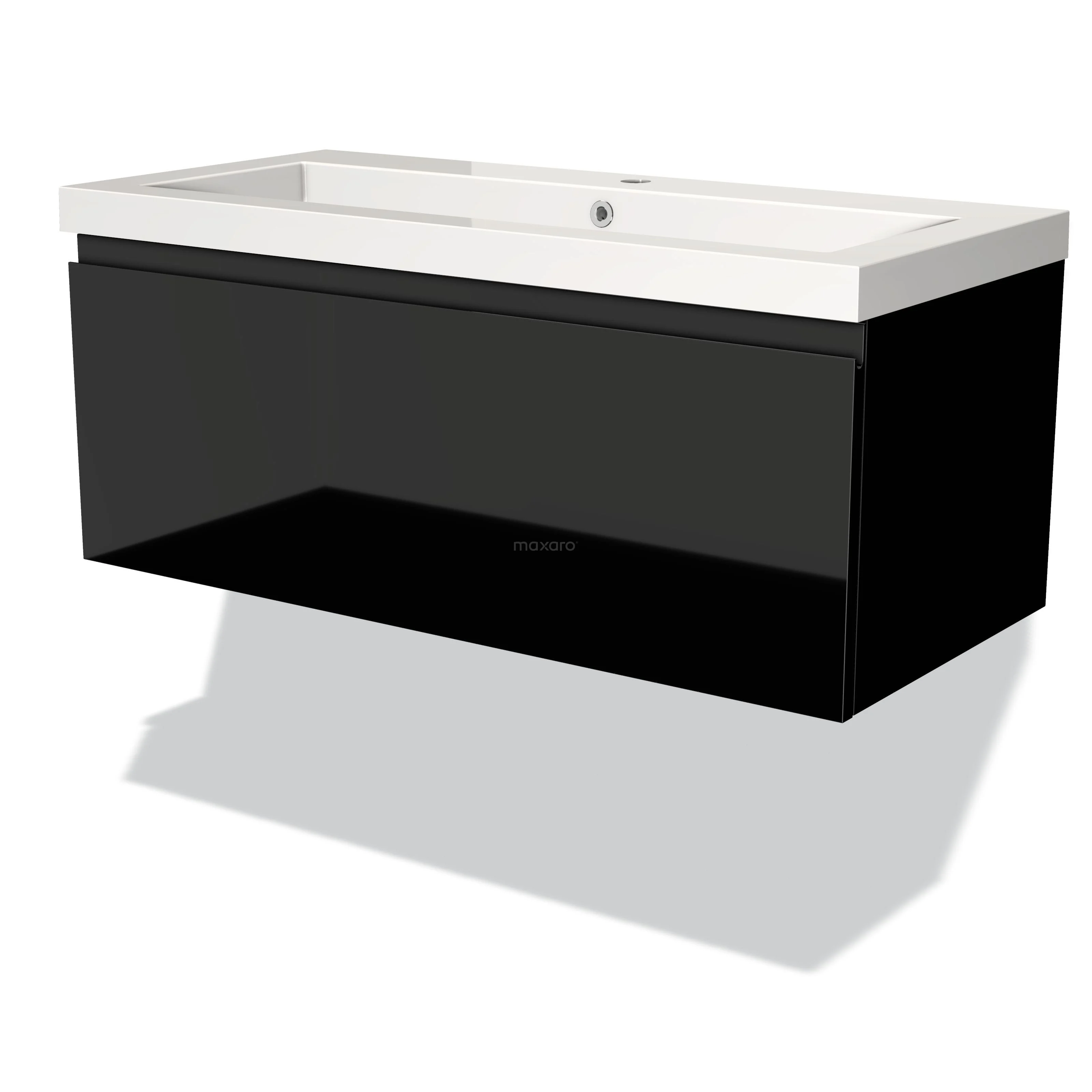 Modulo Waschtische | 100 cm Hochglanz Schwarz Grifflos front Mineralguss 1 Schublade