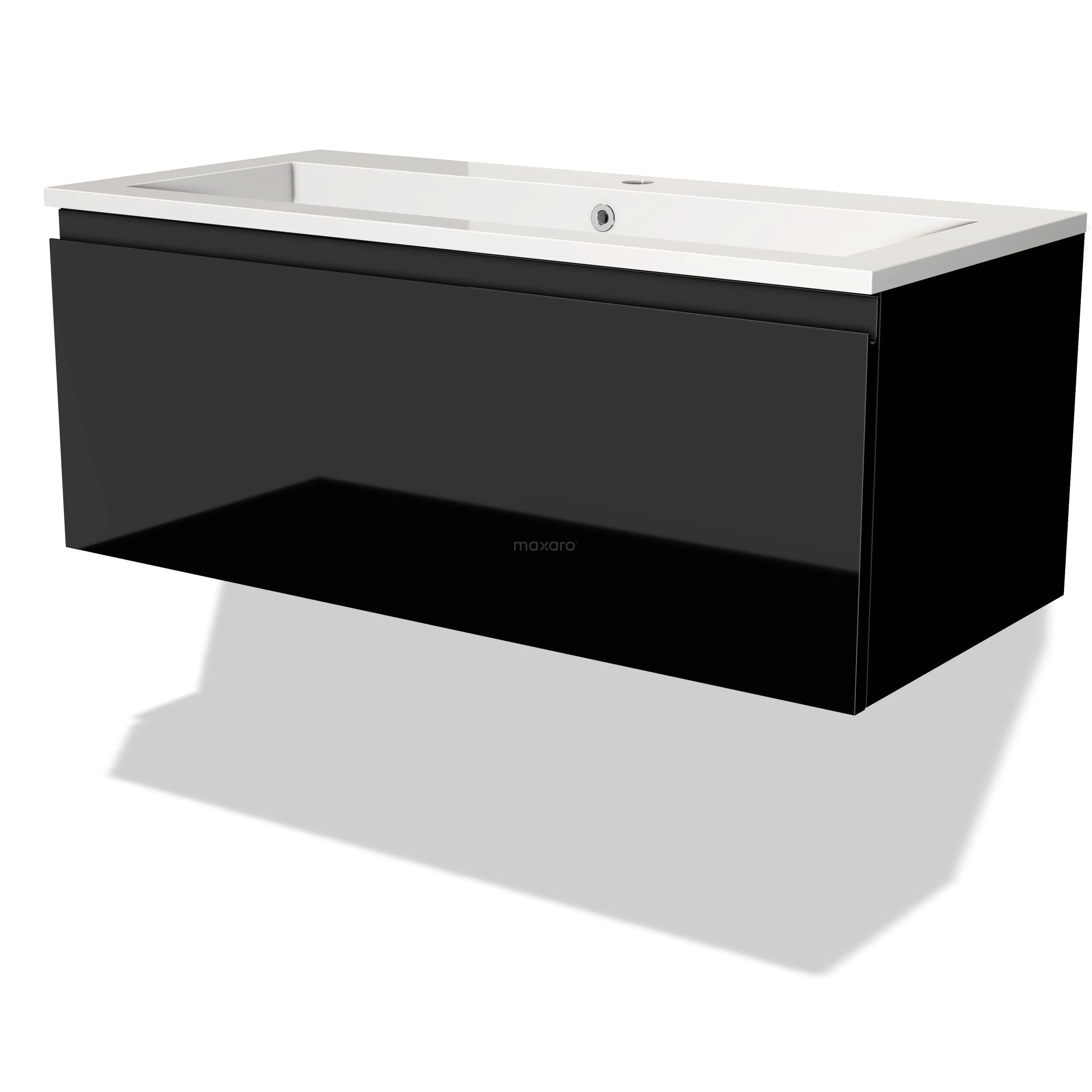 Modulo Waschtische | 100 cm Hochglanz Schwarz Grifflos front Mineralguss 1 Schublade
