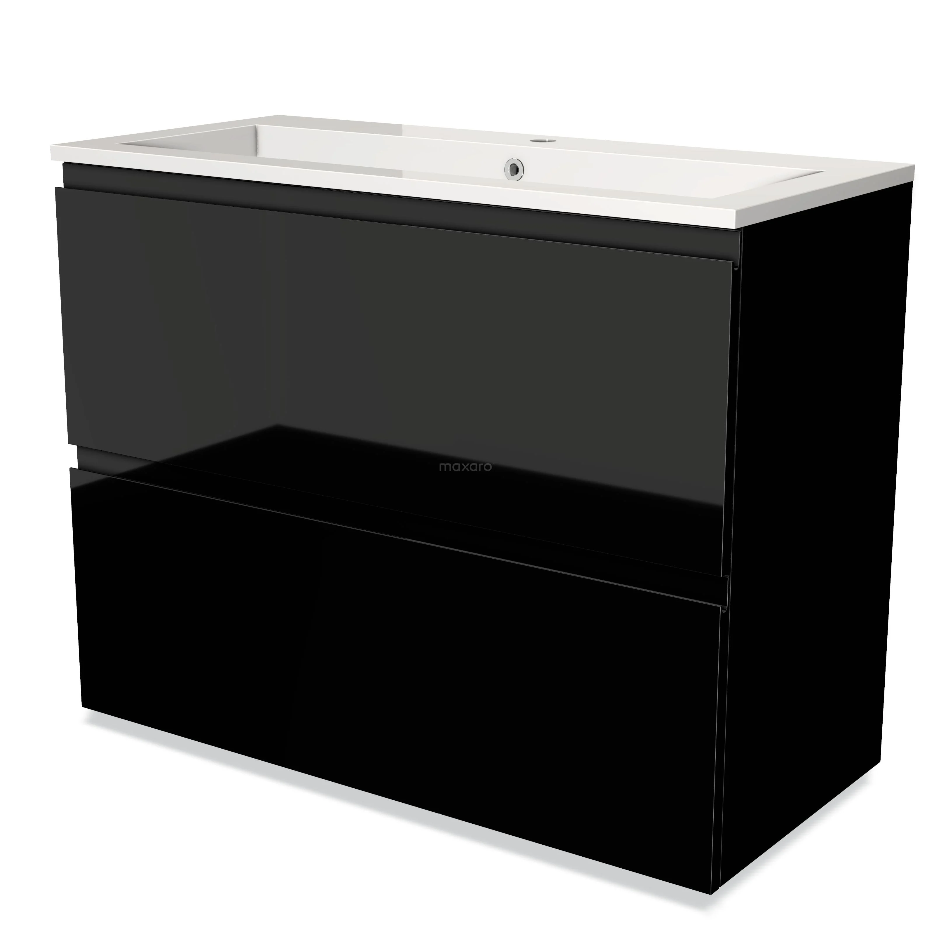Modulo Waschtische | 100 cm Hochglanz Schwarz Grifflos front Mineralguss 2 hohe Schubladen übereinanderliegend