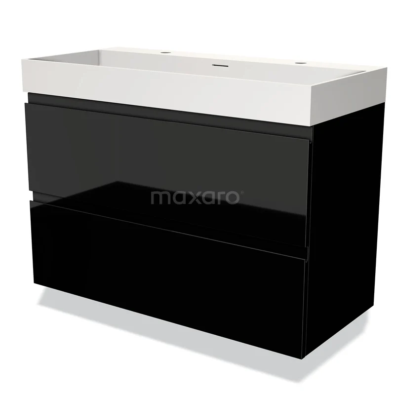 Modulo Waschtische | 100 cm Hochglanz Schwarz Grifflos front Solid Surface 2 übereinanderliegende Schubladen