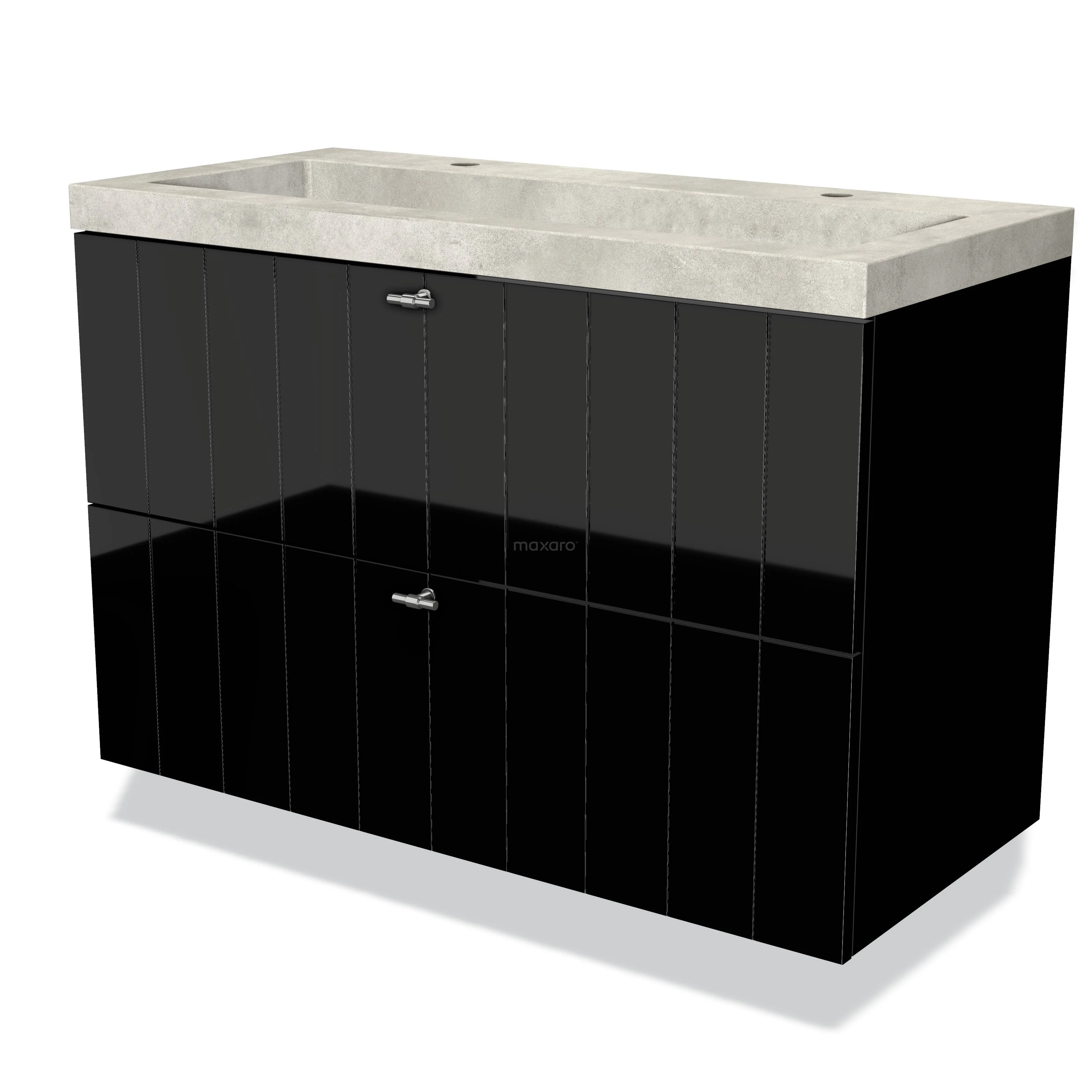 Modulo Waschtische | 100 cm Hochglanz Schwarz Lamelle front Beton 2 übereinanderliegende Schubladen