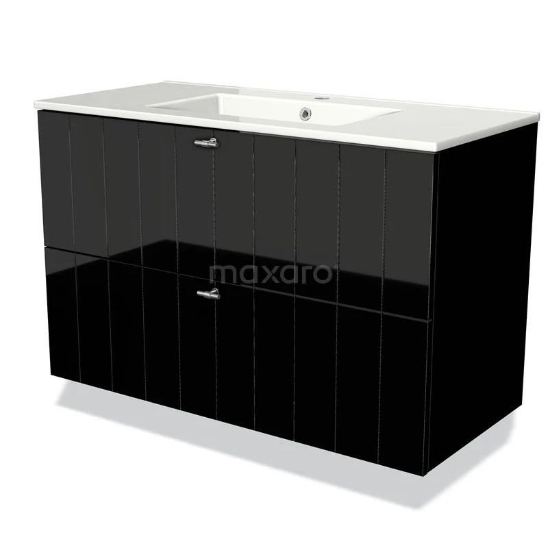 Modulo Waschtische | 100 cm Hochglanz Schwarz Lamelle front Keramik 2 übereinanderliegende Schubladen