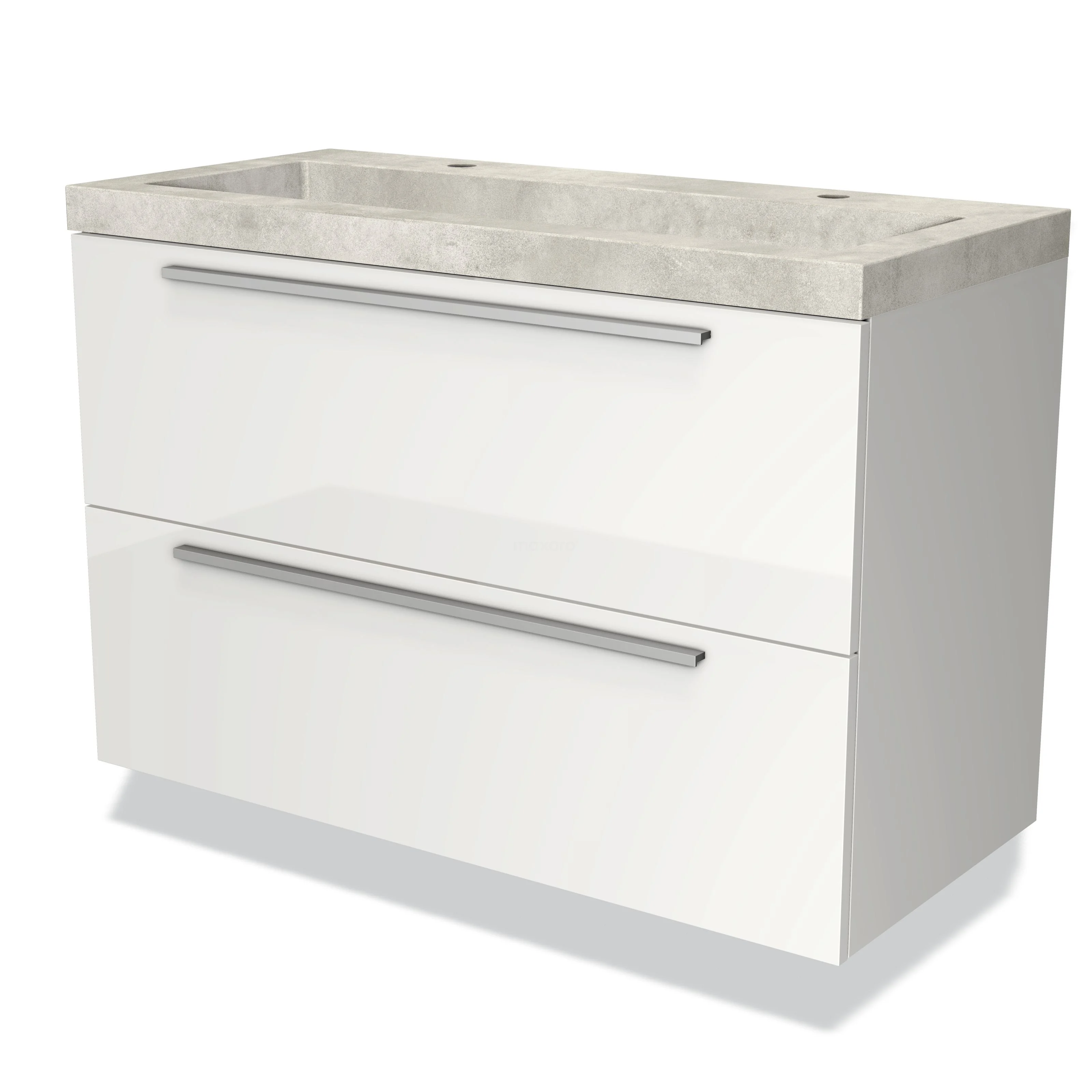 Modulo Waschtische | 100 cm Hochglanz Weiß Flach front Beton 2 übereinanderliegende Schubladen