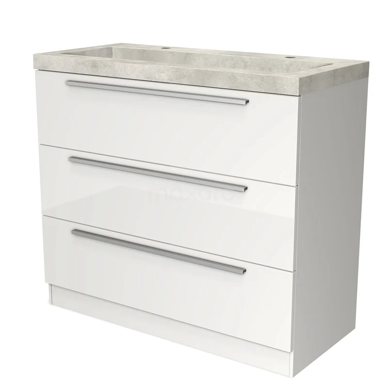 Modulo Waschtische | 100 cm Hochglanz Weiß Flach front Beton 3 stehende Schubladen