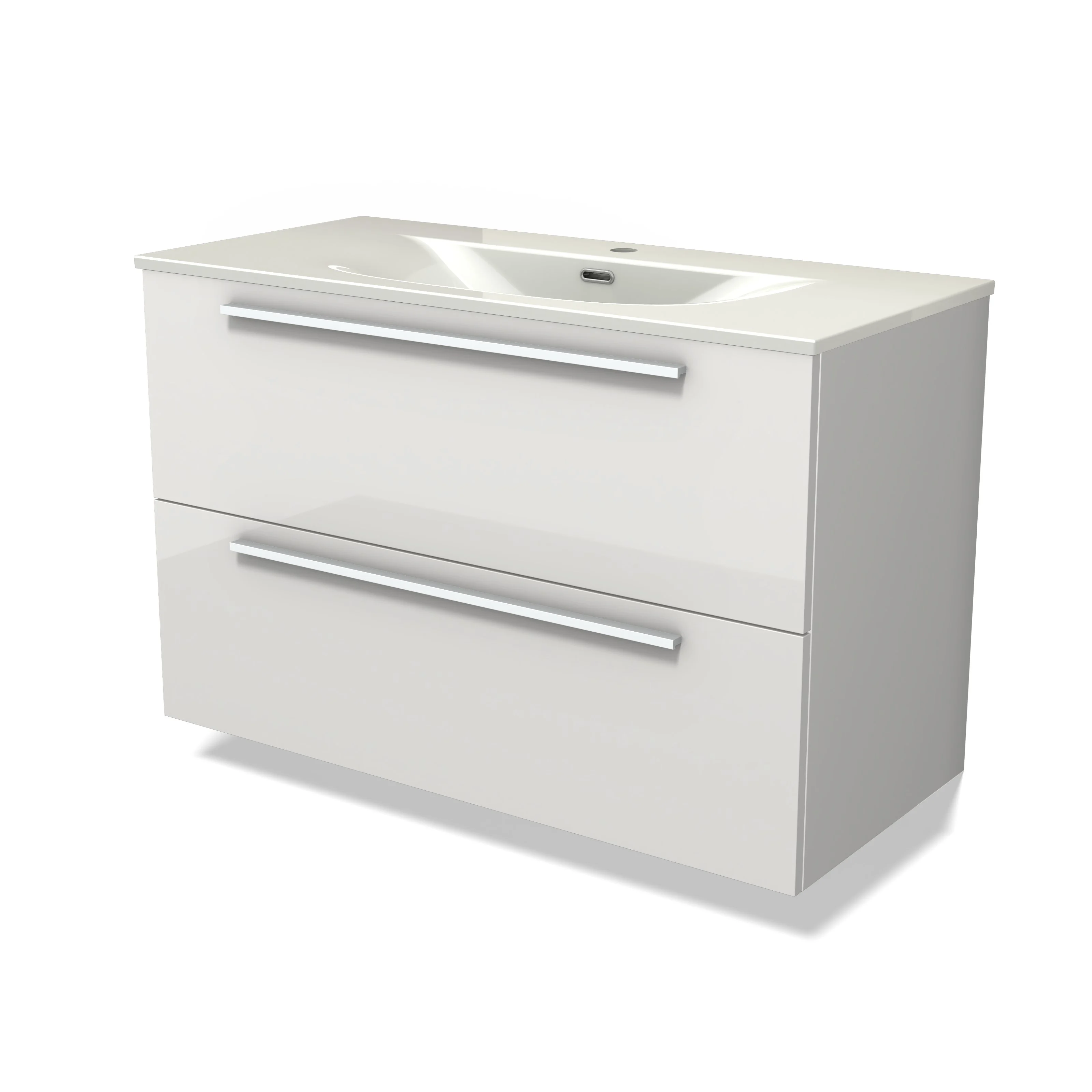 Modulo Waschtische | 100 cm Hochglanz Weiß Flach front Keramik 2 übereinanderliegende Schubladen