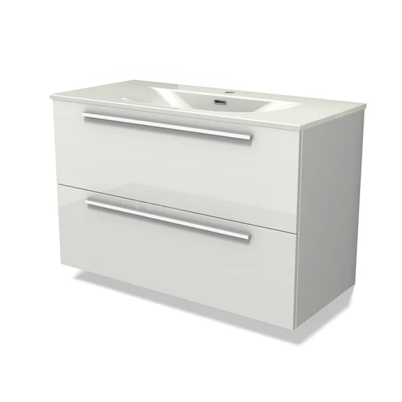 Modulo Waschtische | 100 cm Hochglanz Weiß Flach front Keramik 2 übereinanderliegende Schubladen BMW17-05385
